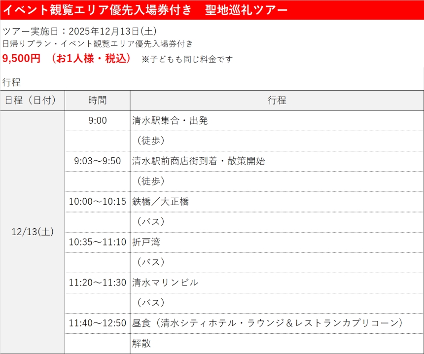 ・本ツアーをキャンセルした場合、商店街イベントの特別観覧席へのご案内はできません。